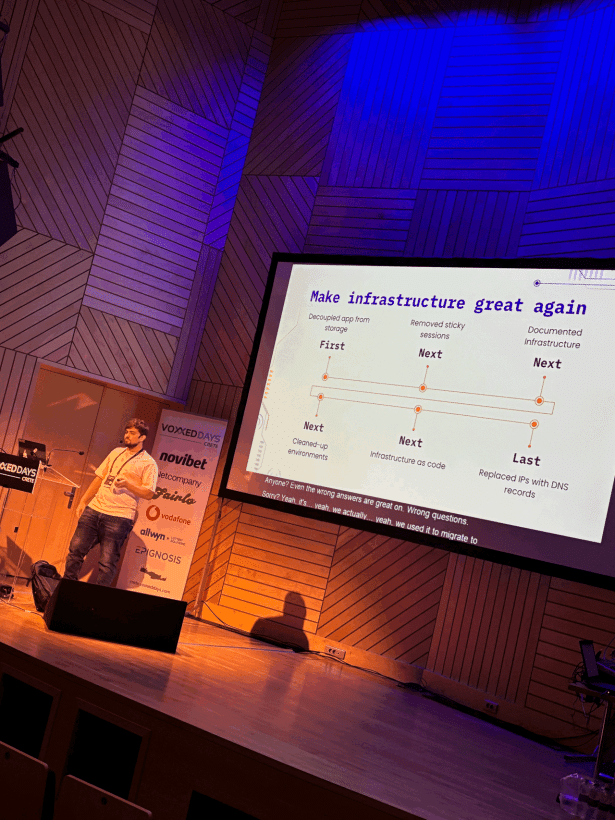 Aggelos shared his experience as a speaker with the talk “Modernizing the Legacy”, presenting the five-year transformation journey of TalentLMS. His honest take on challenges and decisions gave the audience practical insights on evolving large-scale applications.