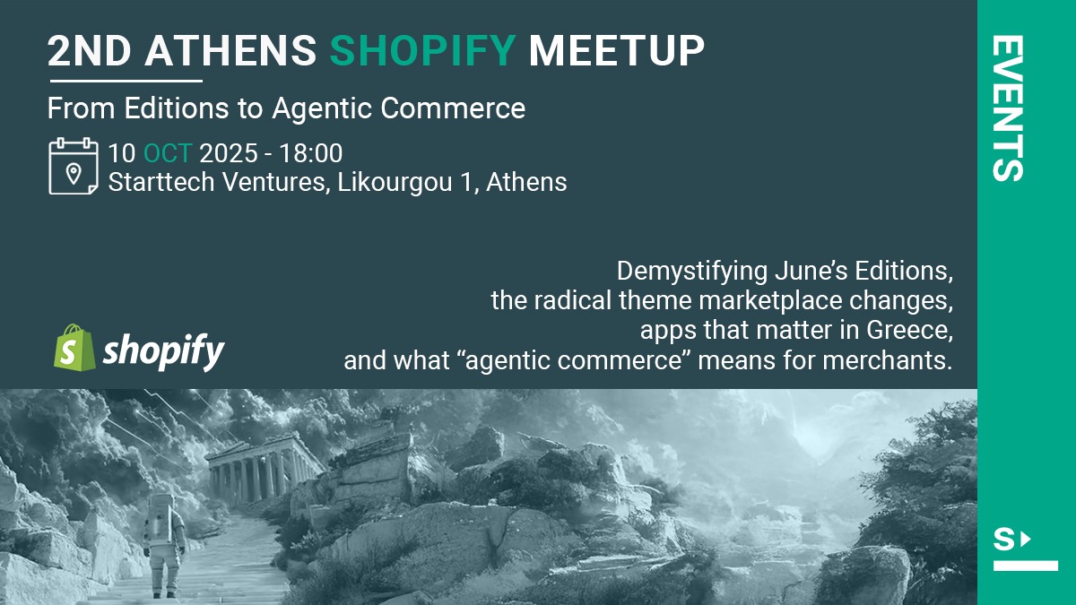 We’re thrilled to announce the 2nd Athens Shopify Meetup, a unique opportunity for entrepreneurs, e-shop owners, developers, and agencies to come together and explore how Shopify is transforming e-commerce in Greece.